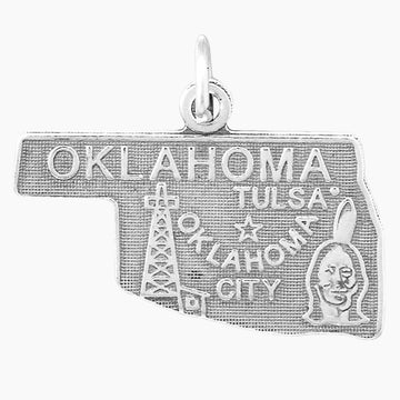 Welcome to the Sooner State! The charm measures 19mm x 19.5mm. .925 Sterling Silver, Oxidized.