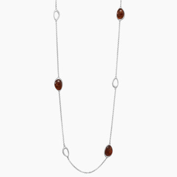 The rolo chain measures 23.5" plus a 2" extension. Features alternating open links and baltic amber. Secured with a lobster clasp closure. .925 Sterling Silver. Genuine baltic amber is from Poland.