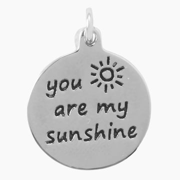 Features an engraved You Are My Sunshine phrase. Includes a sun accent. The charm measures 15.2mm. .925 Sterling Silver, Oxidized.