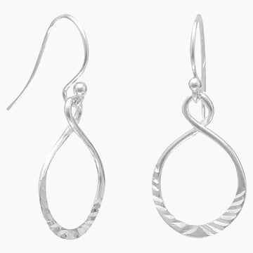 Features diamond cut grooves. The earrings measure 14mm x 28mm. French wire. .925 Sterling Silver.