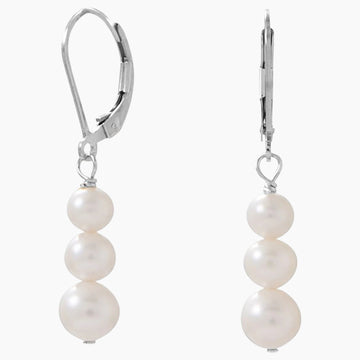 Features three near round graduated pearls. The pearls measure 5mm, 5.5mm and 6.5mm. The earrings hang 35mm. Lever back. .925 Sterling Silver.
