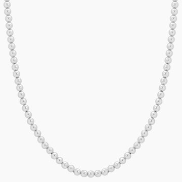 This silver bead necklace measures 16" plus a 2" extension. The beads are 4mm wide with 3mm accents. Add a pendant or wear solo. Finished with a lobster clasp. .925 Sterling Silver.