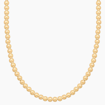 This gold bead necklace measures 16" plus a 2" extension. The beads are 5mm wide with 3mm accents. Add a pendant or wear solo. Finished with a lobster clasp. 14/20 Gold Filled.