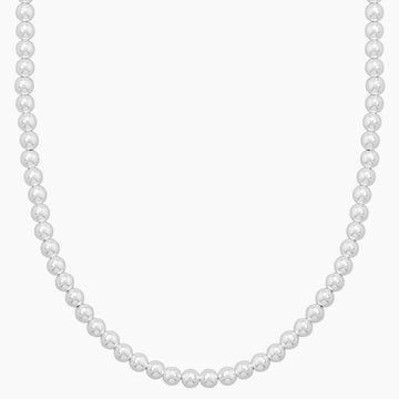 This silver bead necklace measures 16" plus a 2" extension. The beads are 5mm wide with 3mm accents. Add a pendant or wear solo. Finished with a lobster clasp. .925 Sterling Silver.