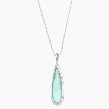 This chain measures 18". Features a polished green roman glass pendant. The pendant measures 11.5mm x 45mm. Finished with a lobster clasp closure. .925 Sterling Silver. Roman glass color will vary. Comes with certificate of...