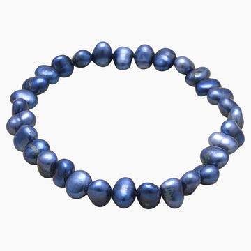 Cultured freshwater pearl stretch bracelet. Features dyed dark blue colored pearls. The pearls range in size from 6mm to 7mm.