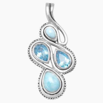 Features blue topaz measuring 5.5mm x 8mm each. Includes dual larimar stones. Offers an attractive bead wrap. The slide measures 18mm x 36mm. .925 Sterling Silver, Oxidized.